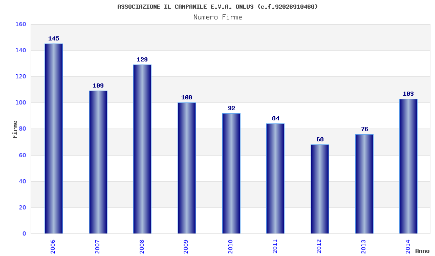 | Anno | Firme | Importi | Media | Naz. | Reg. | Prov. | Comu. |
