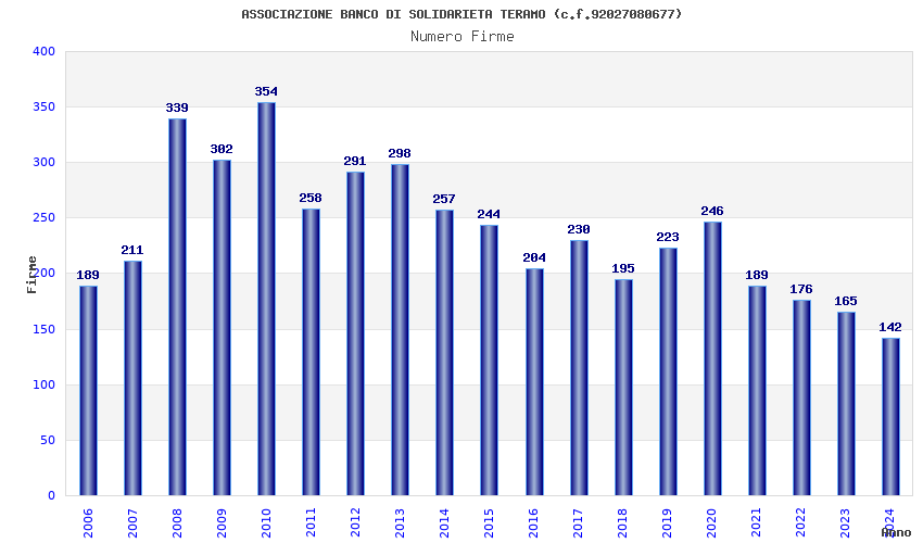 | Anno | Firme | Importi | Media | Naz. | Reg. | Prov. | Comu. |