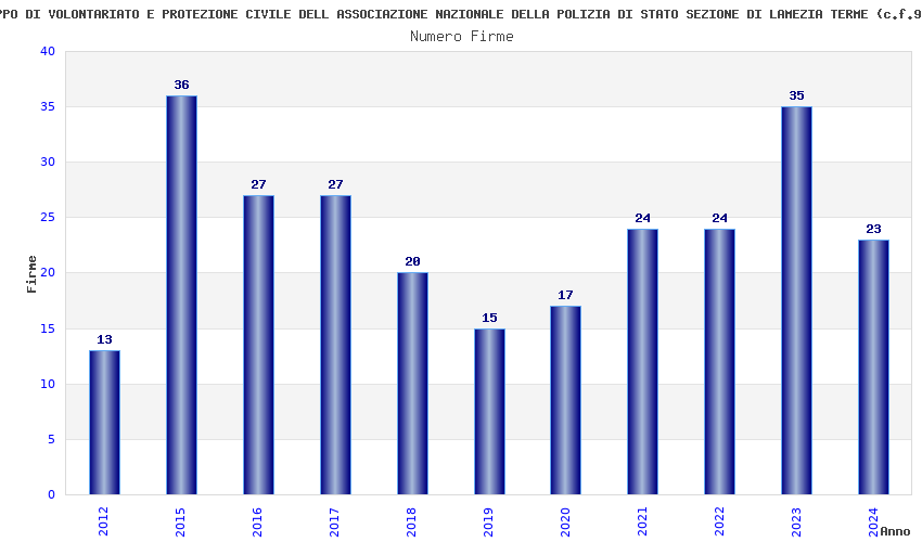 | Anno | Firme | Importi | Media | Naz. | Reg. | Prov. | Comu. |