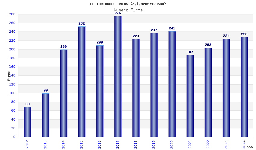| Anno | Firme | Importi | Media | Naz. | Reg. | Prov. | Comu. |
