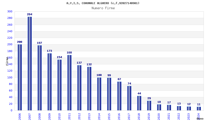 | Anno | Firme | Importi | Media | Naz. | Reg. | Prov. | Comu. |