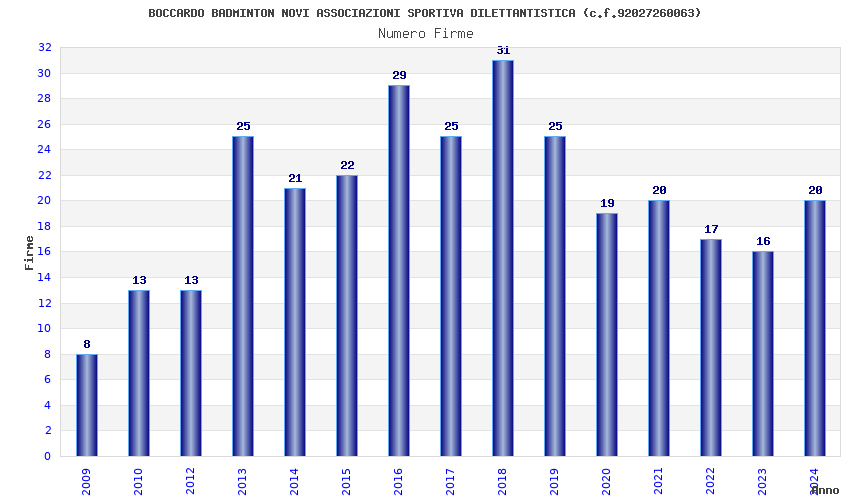 | 2018 | 31 | 1.453,90 | 46,90 | 28.847 | 2.352 | 203 | 15 |