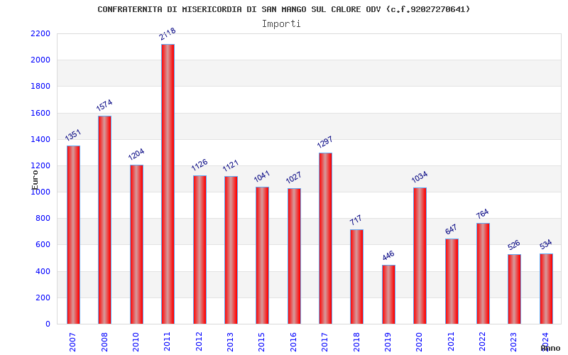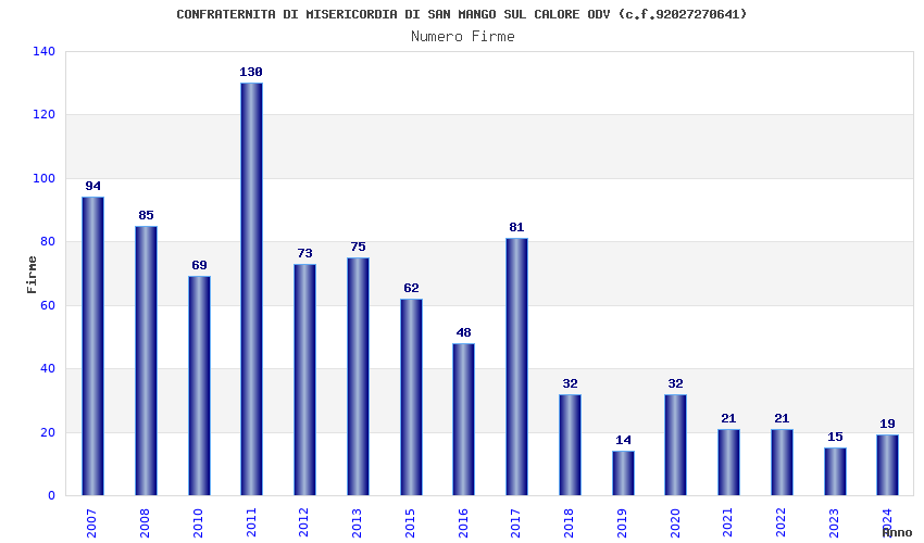 | Anno | Firme | Importi | Media | Naz. | Reg. | Prov. | Comu. |