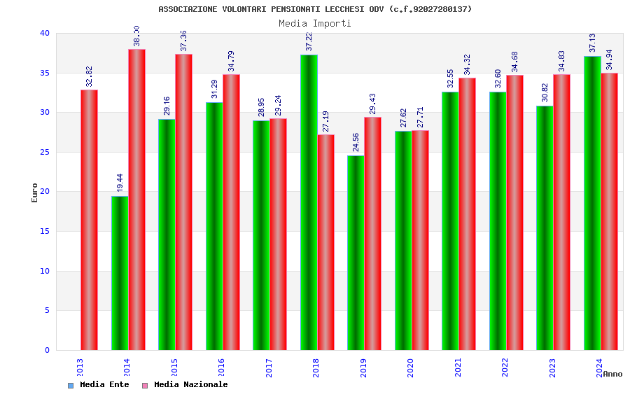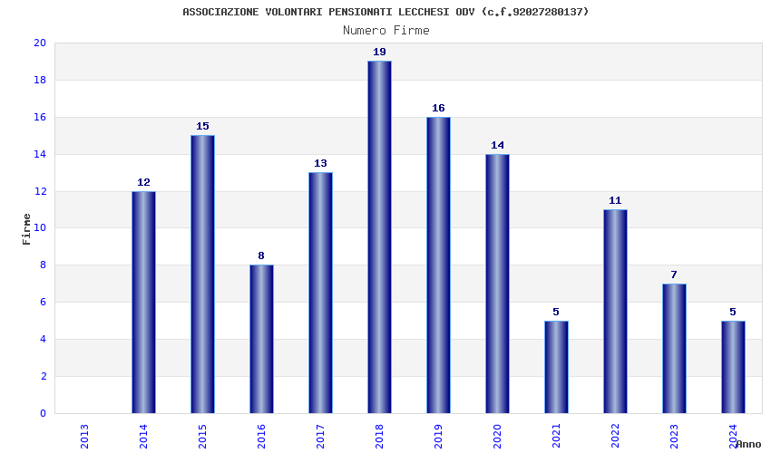 | Anno | Firme | Importi | Media | Naz. | Reg. | Prov. | Comu. |