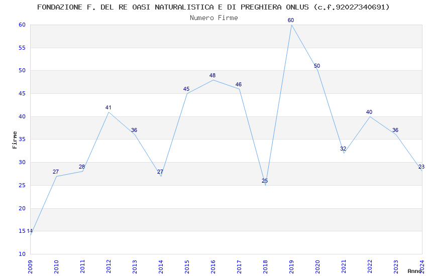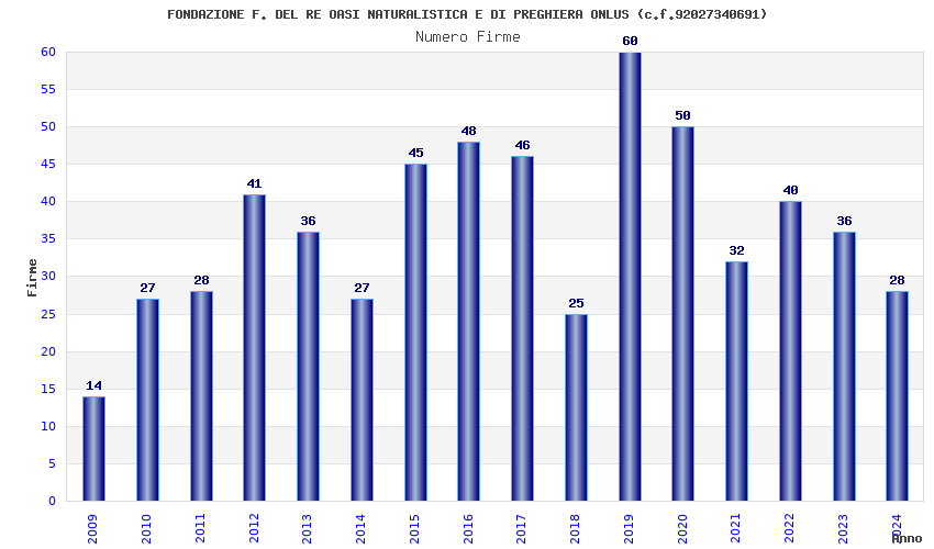 | Anno | Firme | Importi | Media | Naz. | Reg. | Prov. | Comu. |