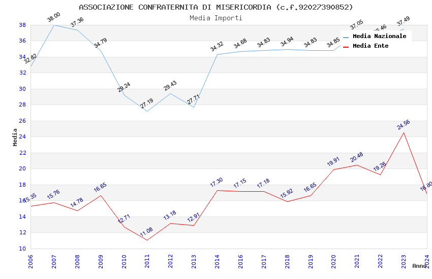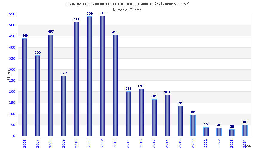 | Anno | Firme | Importi | Media | Naz. | Reg. | Prov. | Comu. |