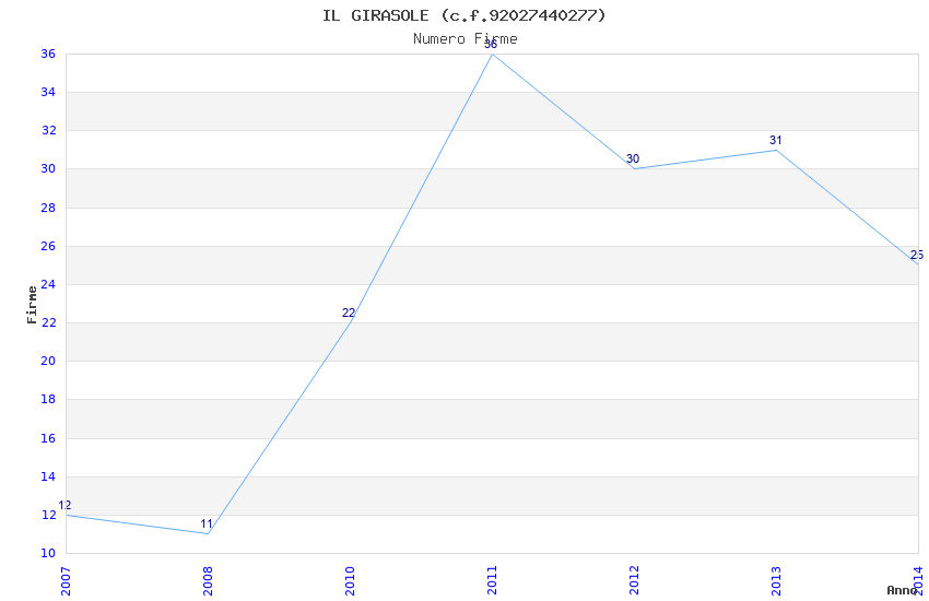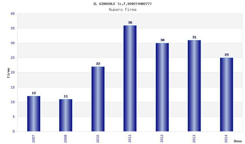 | Anno | Firme | Importi | Media | Naz. | Reg. | Prov. | Comu. |