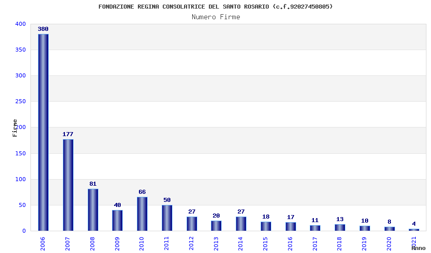 | Anno | Firme | Importi | Media | Naz. | Reg. | Prov. | Comu. |