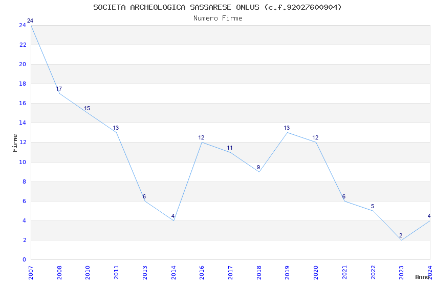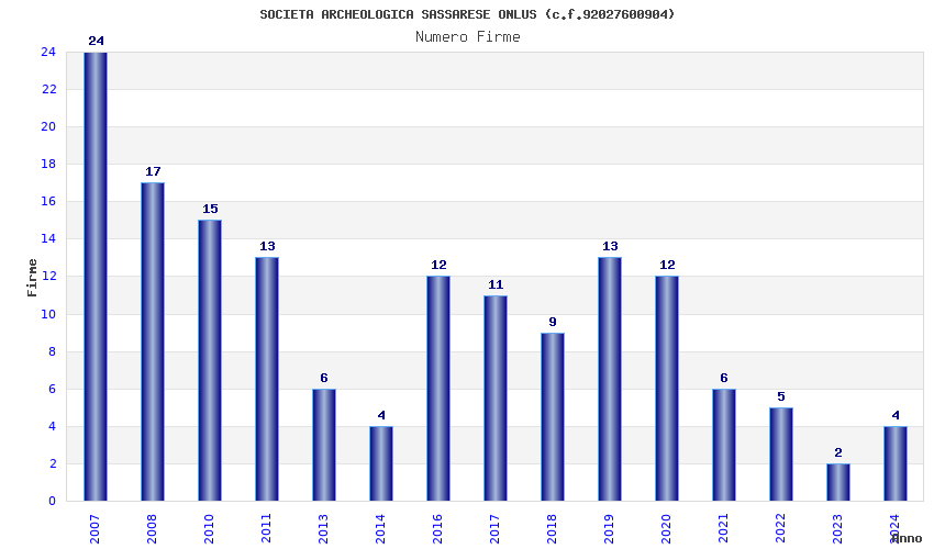 | Anno | Firme | Importi | Media | Naz. | Reg. | Prov. | Comu. |