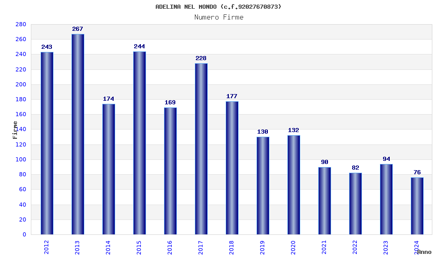 Anno Firme Importi Media Naz. Reg. Prov. Comu.