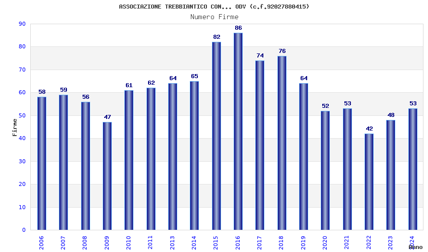 | 2016 | 86 | 3.352,36 | 38,98 | 15.722 | 379 | 82 | 33 |