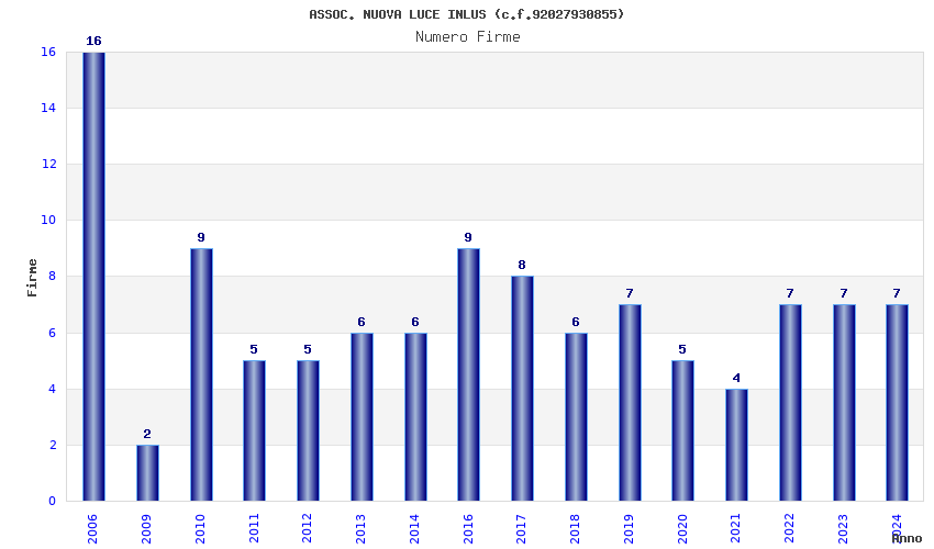 | Anno | Firme | Importi | Media | Naz. | Reg. | Prov. | Comu. |