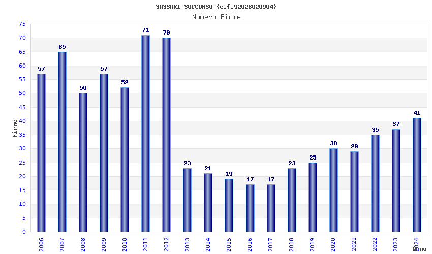 | 2011 | 71 | 1.598,98 | 22,52 | 16.655 | 337 | 70 | 24 |