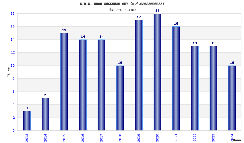 | Anno | Firme | Importi | Media | Naz. | Reg. | Prov. | Comu. |
