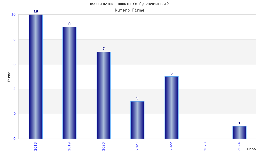 | Anno | Firme | Importi | Media | Naz. | Reg. | Prov. | Comu. |