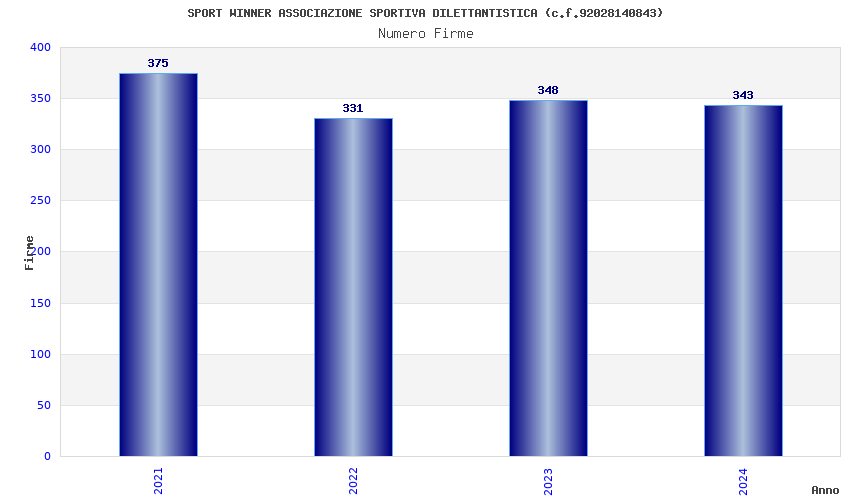 | Anno | Firme | Importi | Media | Naz. | Reg. | Prov. | Comu. |