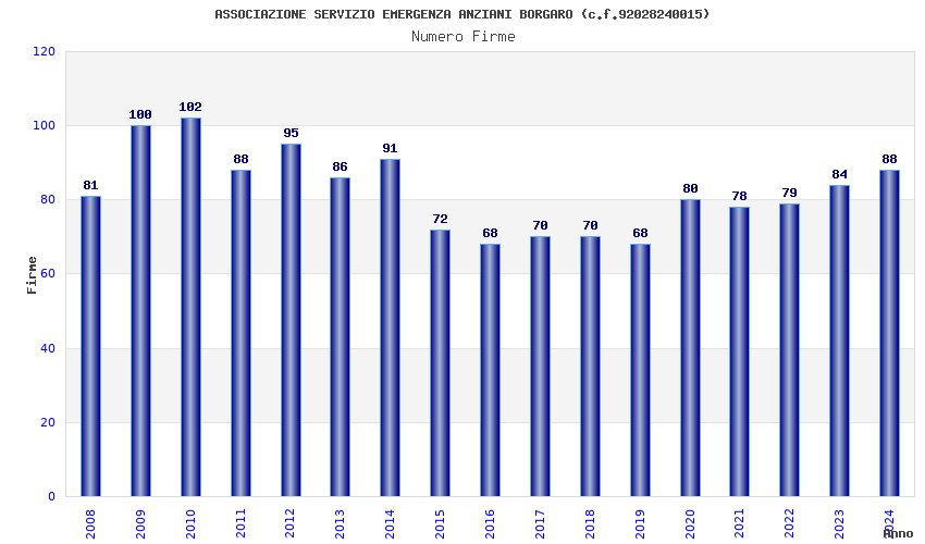 | Anno | Firme | Importi | Media | Naz. | Reg. | Prov. | Comu. |