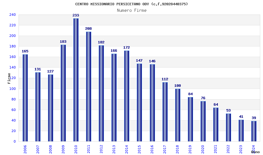 | Anno | Firme | Importi | Media | Naz. | Reg. | Prov. | Comu. |