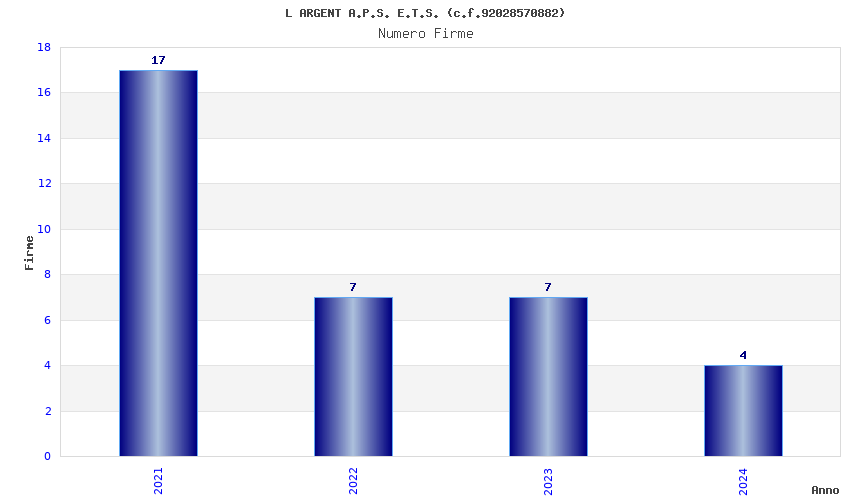 | Anno | Firme | Importi | Media | Naz. | Reg. | Prov. | Comu. |