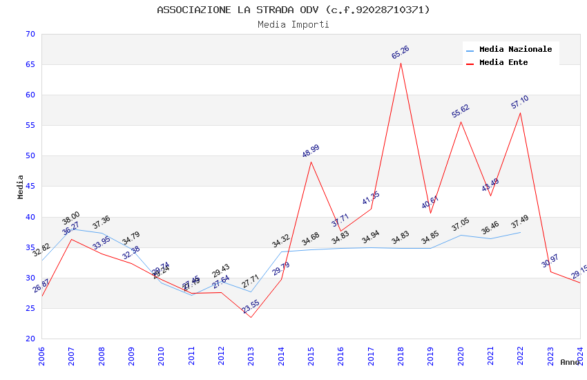| Anno | Firme | Importi | Media | Naz. | Reg. | Prov. | Comu. |