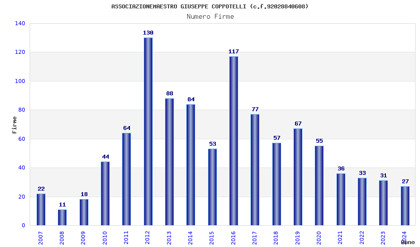 | 2012 | 130 | 2.555,66 | 19,66 | 15.456 | 1.637 | 65 | 2 |