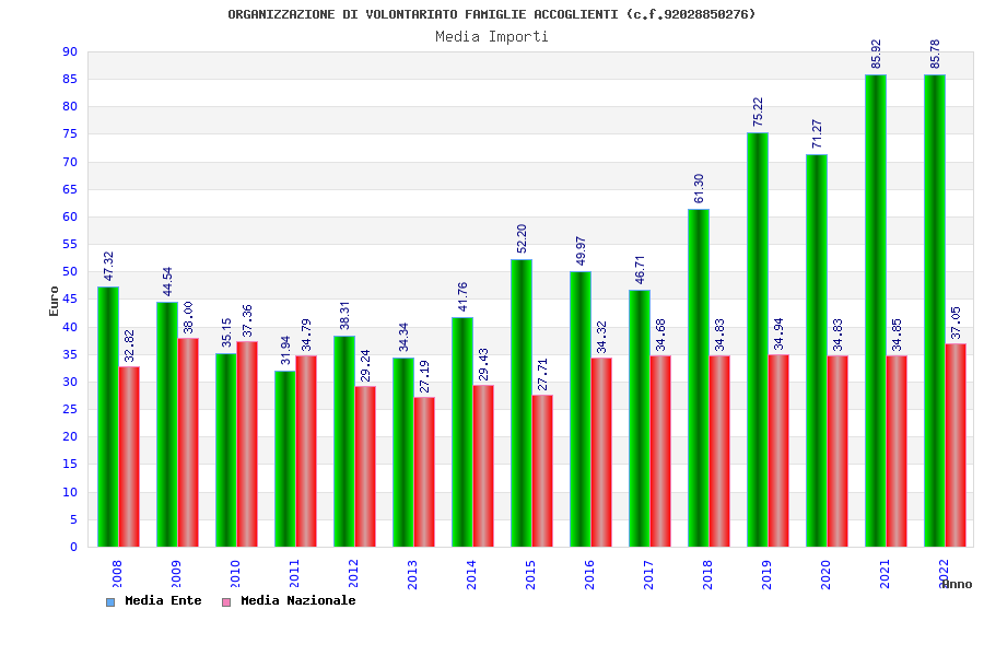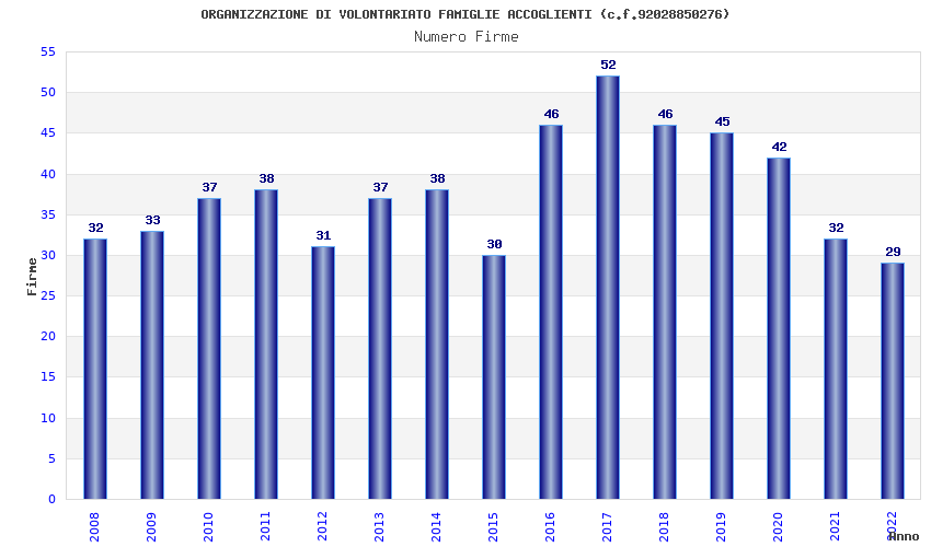 | Anno | Firme | Importi | Media | Naz. | Reg. | Prov. | Comu. |