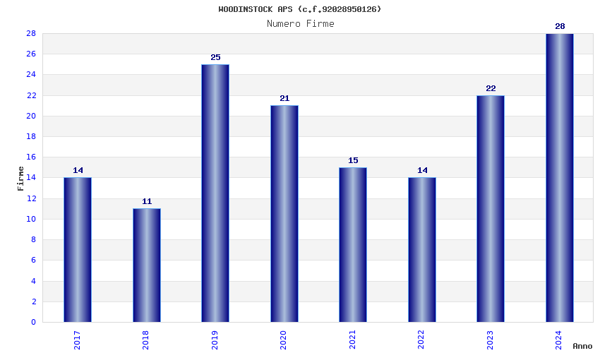 | Anno | Firme | Importi | Media | Naz. | Reg. | Prov. | Comu. |