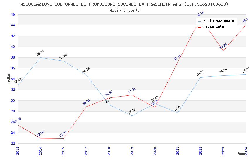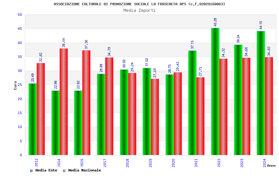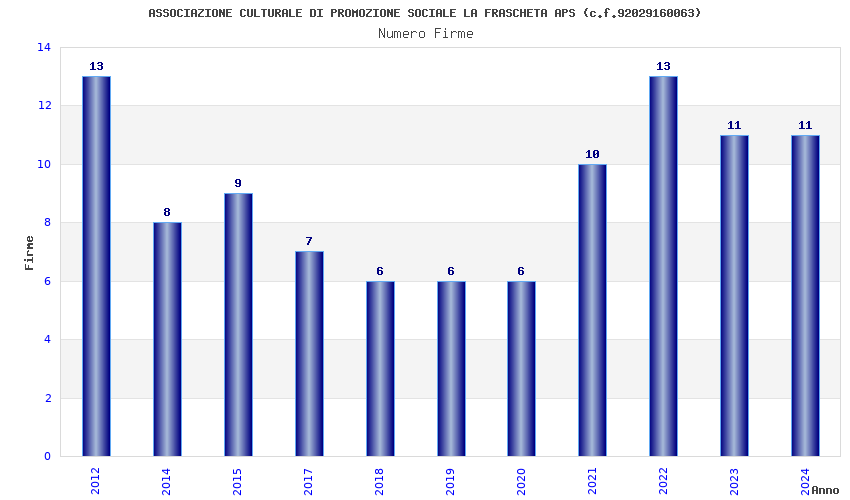 | Anno | Firme | Importi | Media | Naz. | Reg. | Prov. | Comu. |