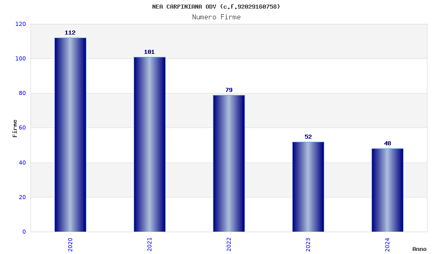 | Anno | Firme | Importi | Media | Naz. | Reg. | Prov. | Comu. |