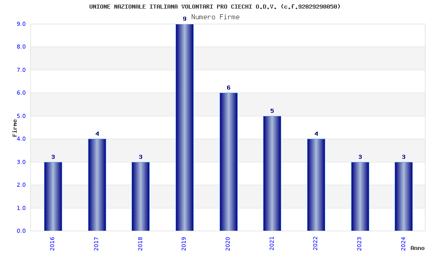 | Anno | Firme | Importi | Media | Naz. | Reg. | Prov. | Comu. |