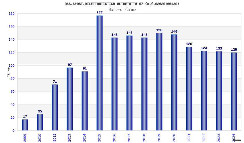 | Anno | Firme | Importi | Media | Naz. | Reg. | Prov. | Comu. |