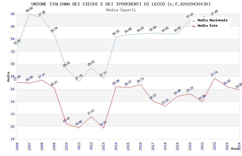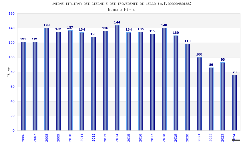| Anno | Firme | Importi | Media | Naz. | Reg. | Prov. | Comu. |