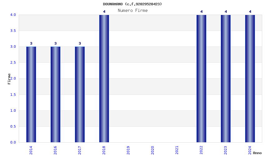 | Anno | Firme | Importi | Media | Naz. | Reg. | Prov. | Comu. |