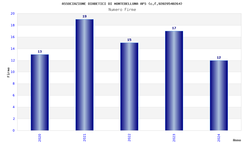 | Anno | Firme | Importi | Media | Naz. | Reg. | Prov. | Comu. |