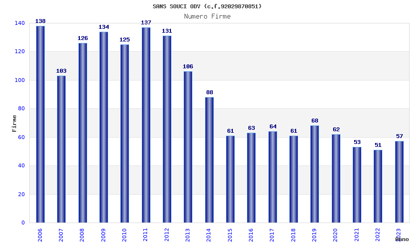 | Anno | Firme | Importi | Media | Naz. | Reg. | Prov. | Comu. |