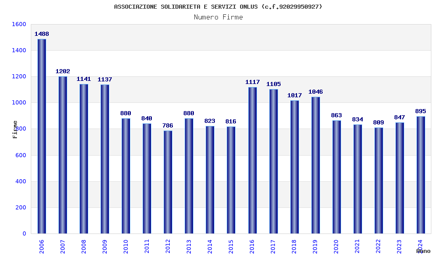 | Anno | Firme | Importi | Media | Naz. | Reg. | Prov. | Comu. |