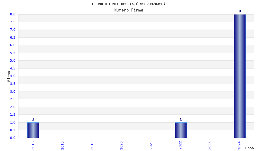 | Anno | Firme | Importi | Media | Naz. | Reg. | Prov. | Comu. |
