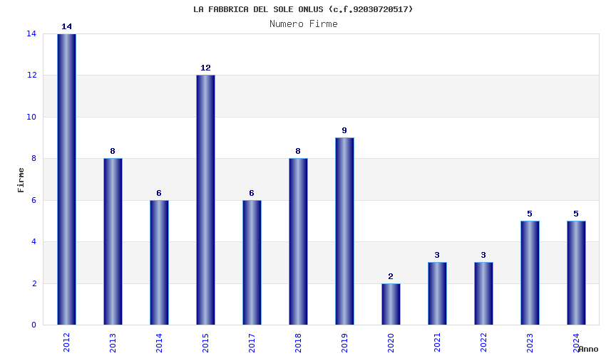 | Anno | Firme | Importi | Media | Naz. | Reg. | Prov. | Comu. |