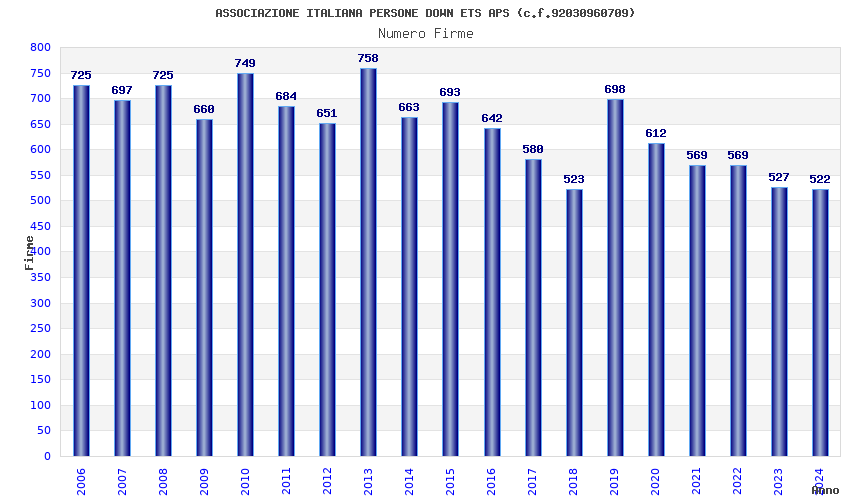 | Anno | Firme | Importi | Media | Naz. | Reg. | Prov. | Comu. |