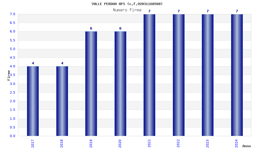 | Anno | Firme | Importi | Media | Naz. | Reg. | Prov. | Comu. |