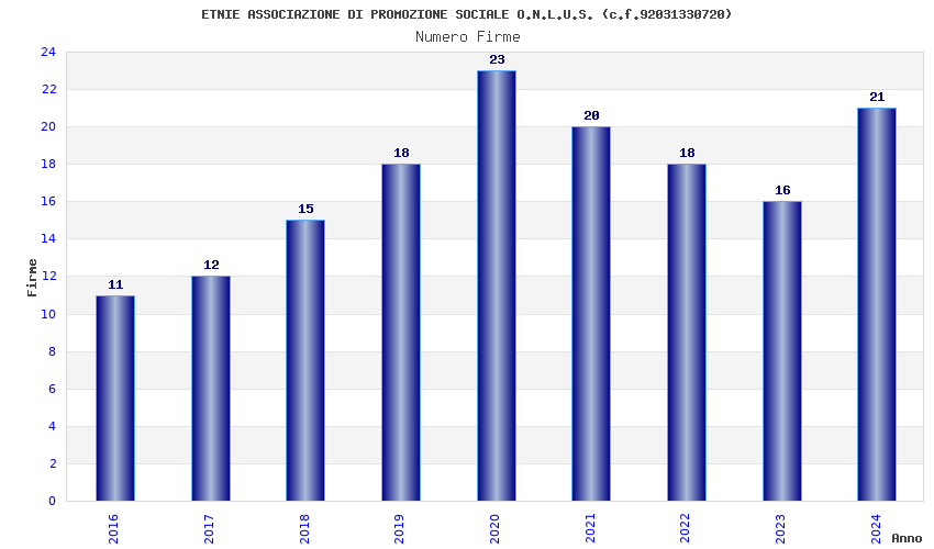 | Anno | Firme | Importi | Media | Naz. | Reg. | Prov. | Comu. |