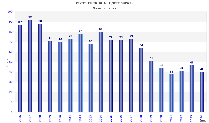 | Anno | Firme | Importi | Media | Naz. | Reg. | Prov. | Comu. |
