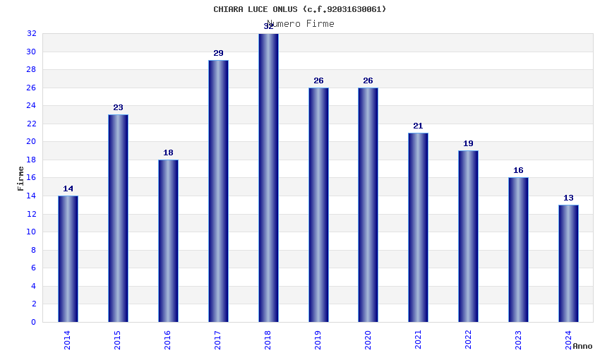 | Anno | Firme | Importi | Media | Naz. | Reg. | Prov. | Comu. |