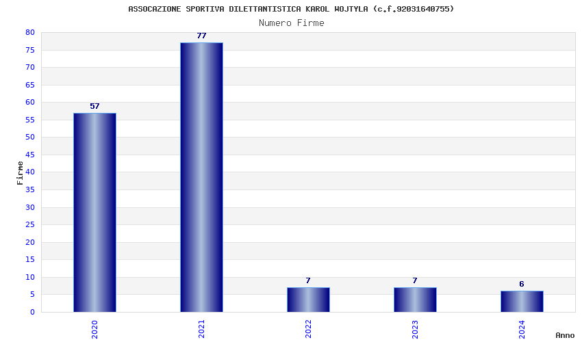 | Anno | Firme | Importi | Media | Naz. | Reg. | Prov. | Comu. |