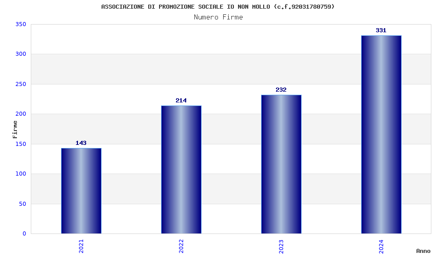 | Anno | Firme | Importi | Media | Naz. | Reg. | Prov. | Comu. |