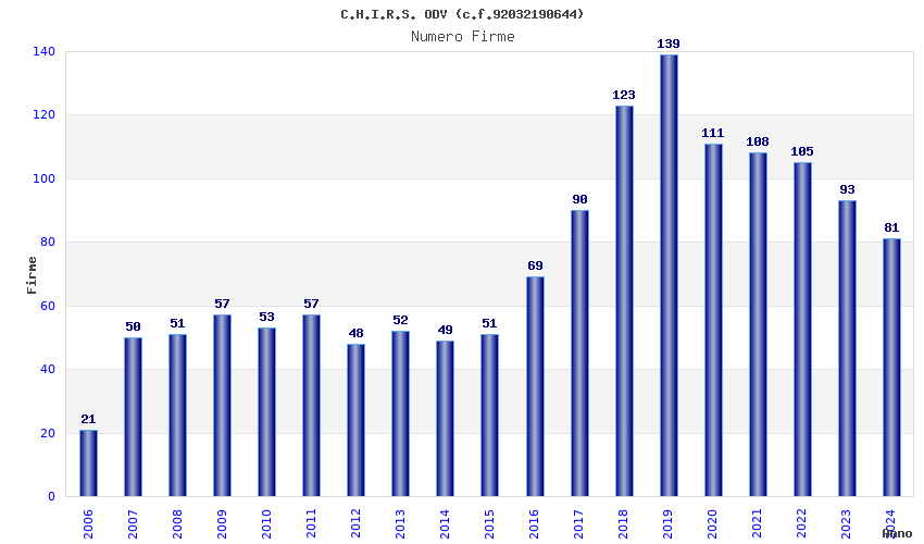 | Anno | Firme | Importi | Media | Naz. | Reg. | Prov. | Comu. |