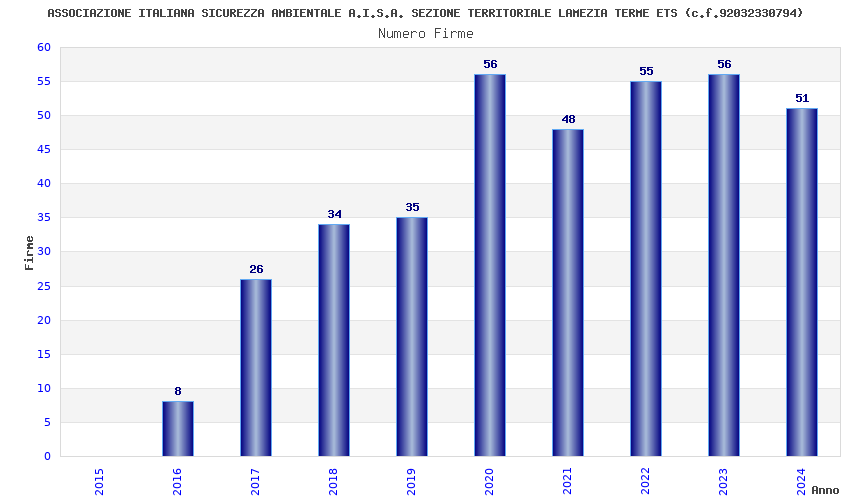 | Anno | Firme | Importi | Media | Naz. | Reg. | Prov. | Comu. |