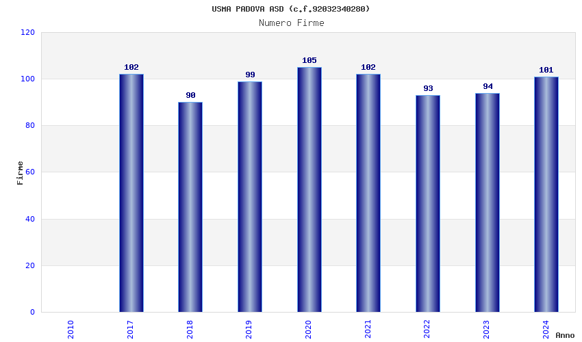 | Anno | Firme | Importi | Media | Naz. | Reg. | Prov. | Comu. |