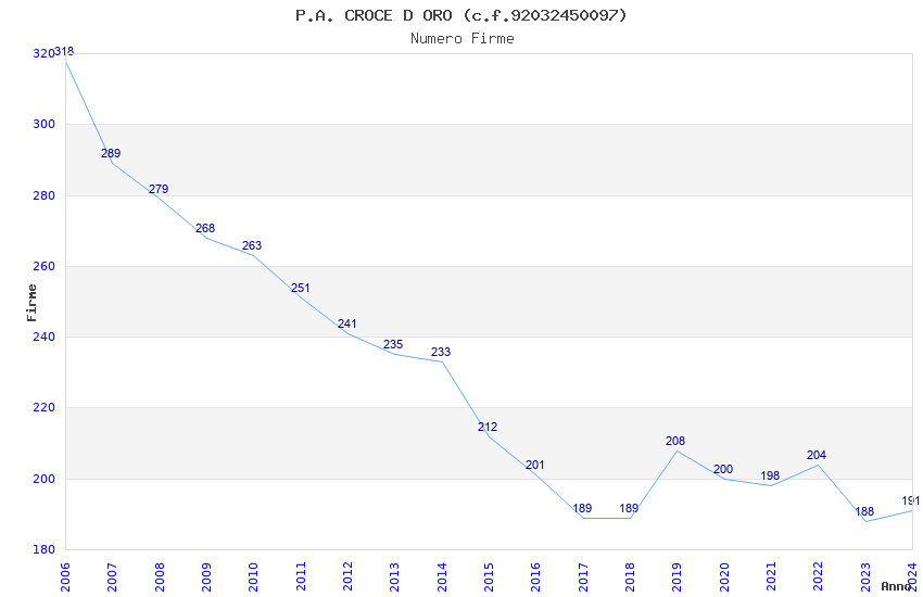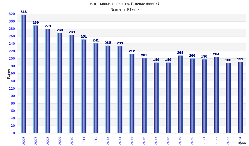 | Anno | Firme | Importi | Media | Naz. | Reg. | Prov. | Comu. |