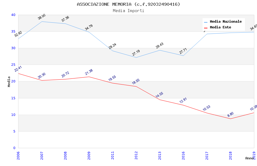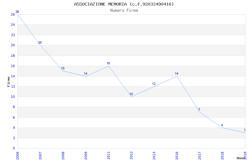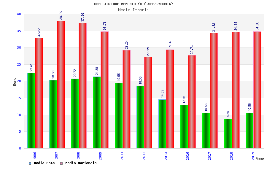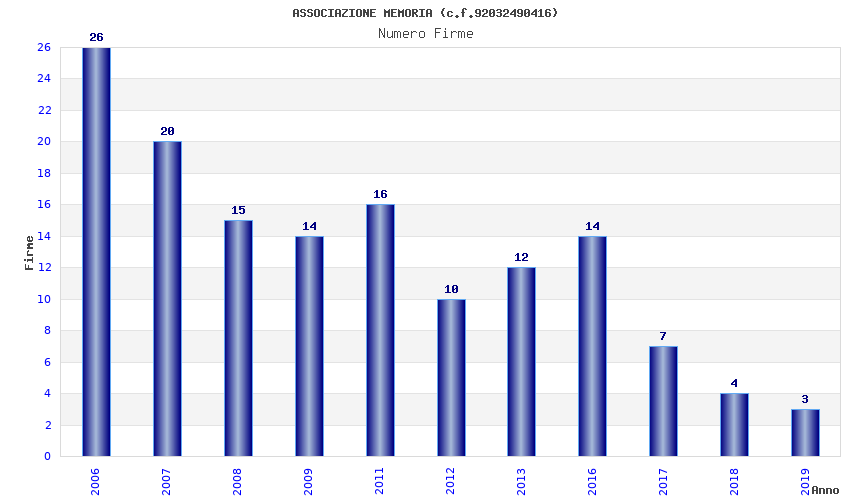 | Anno | Firme | Importi | Media | Naz. | Reg. | Prov. | Comu. |